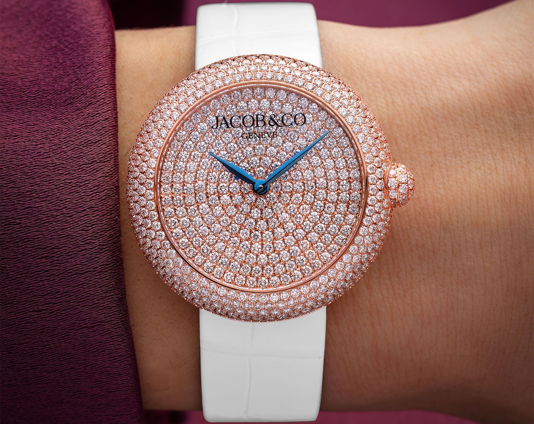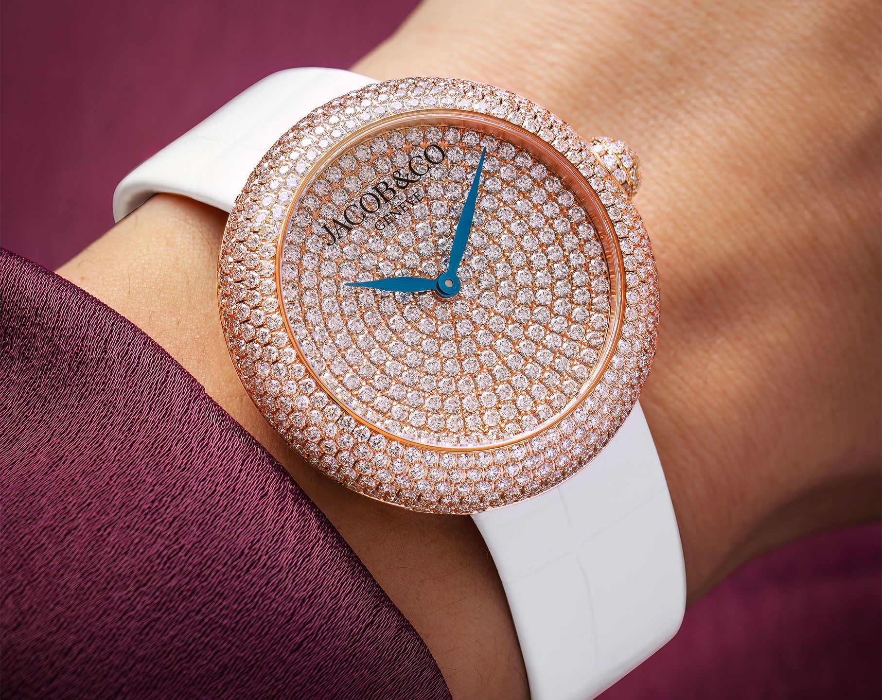 Buy Switzerland made Jacob & Co. Brilliant Women watch in Round shape with White Leather Strap online/in-store at great price in India. | BQ020.40.RH.AA.ABALA
