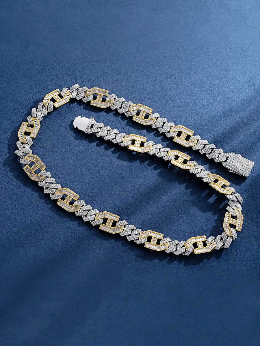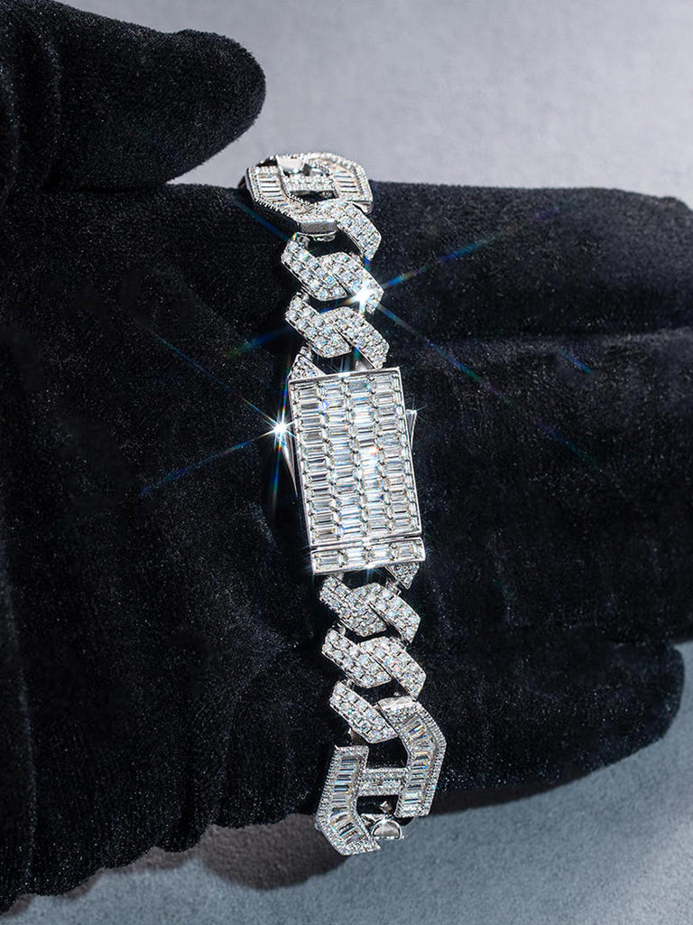 Made to Order 15mm S925 Moissanite Prong Baguette Cuban Chain or Bracelet