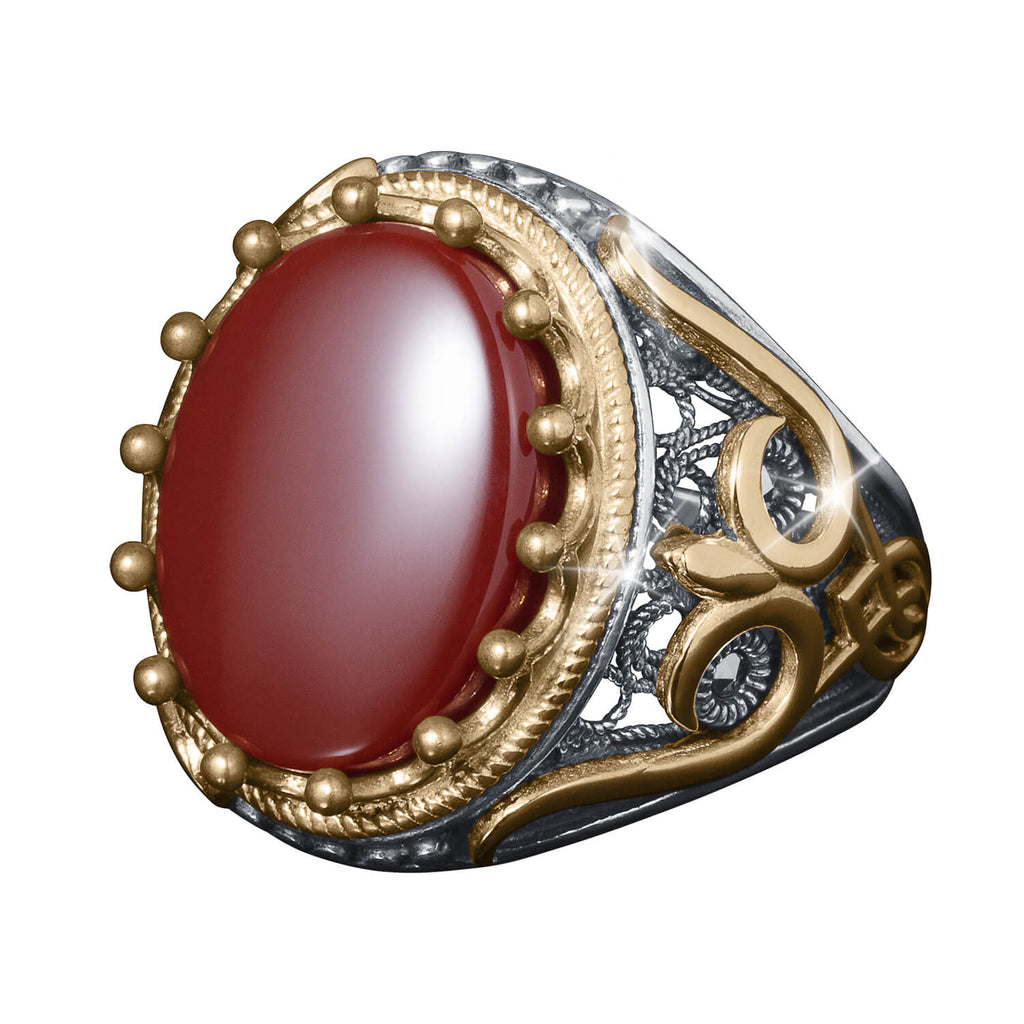 Expressing a sense of personal style, this men’s ring has a uniquely textured shank, expertly crafted from sterling silver with a two tone finish. This charming design features a striking oval Carnelian cabochon at its center. Carnelian has been used in jewelry for thousands of years, from the Egyptians to the Romans. Add a powerful color and natural detailing to your look.